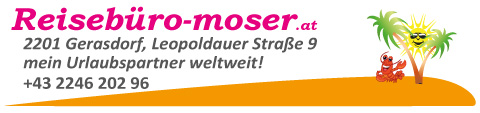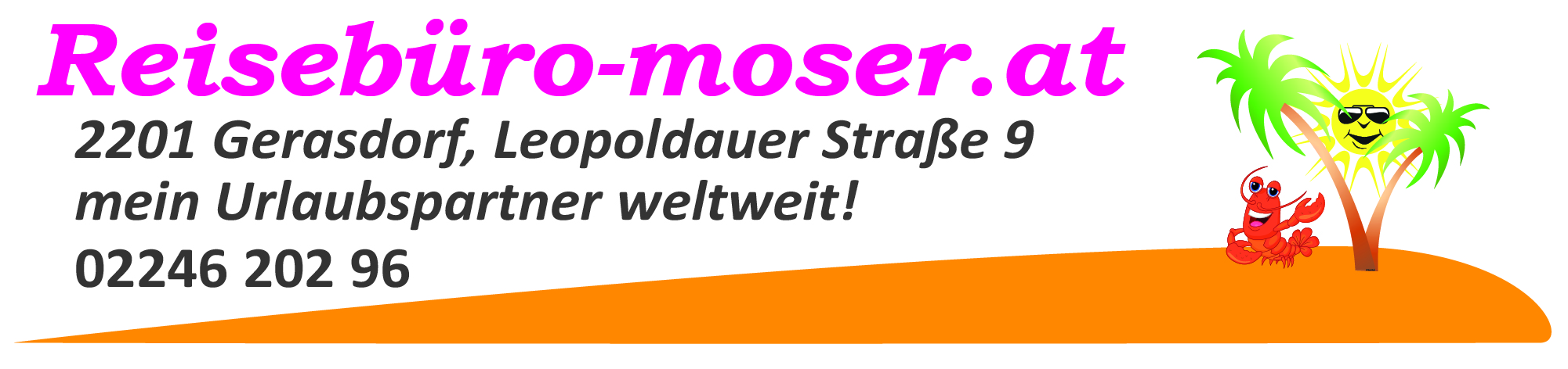 Copyright © 1997 - 2023 Reisebüro Moser. Alle Rechte vorbehalten. AT 2201 Gerasdorf, Leopoldauer Straße 9 Telefon: +43 2246 202 96
